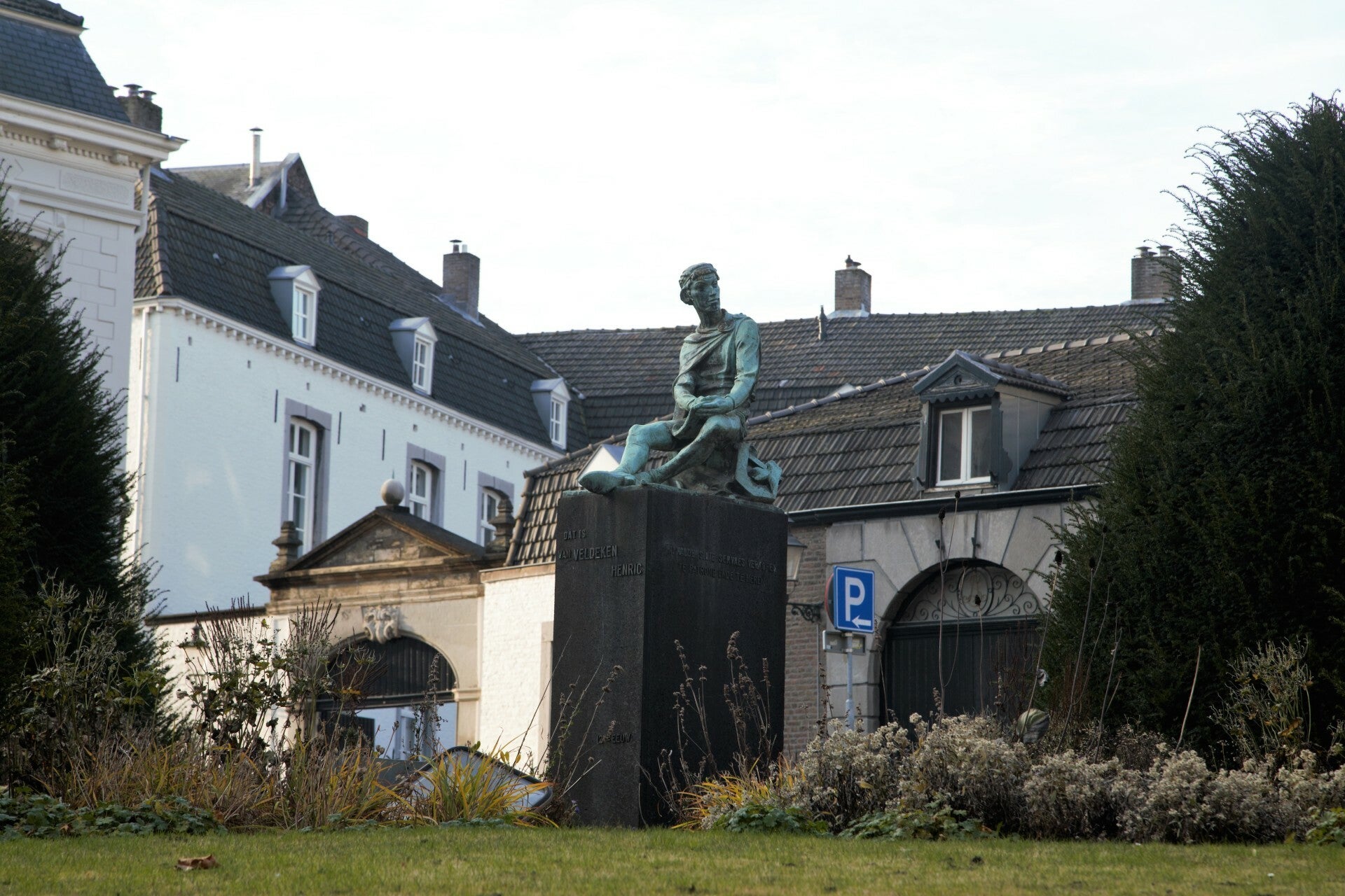 Veldeke is de eerste volkstalige schrijver van de lage landen. Zijn verhalen worden gezien als de basis voor de Nederlandse, Limburgse en Duitse literatuur. Het standbeeld "Henric van Veldeke" werd op initiatief van een in 1910 opgericht herdenkingscomité door de minister van Onderwijs, Kunsten en Wetenschappen, Mr. H.P. Marchant, onthuld in 1934. Het ontwerp van het beeld is van Charles Vos. De sokkel is ontworpen door A. Boosten.
