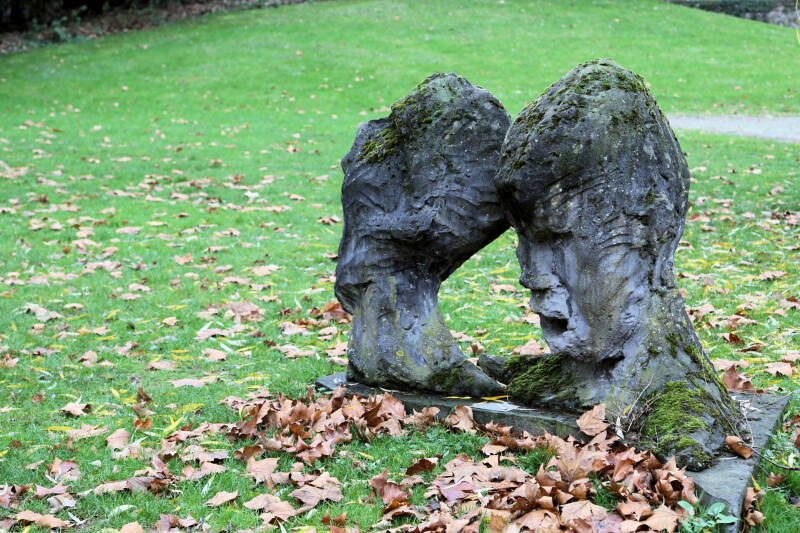 In de tuin van het Universiteitsgebouw aan de Tongersestraat staat het beeld de Twee Koppen van Annet van de Elzen uit 1987.